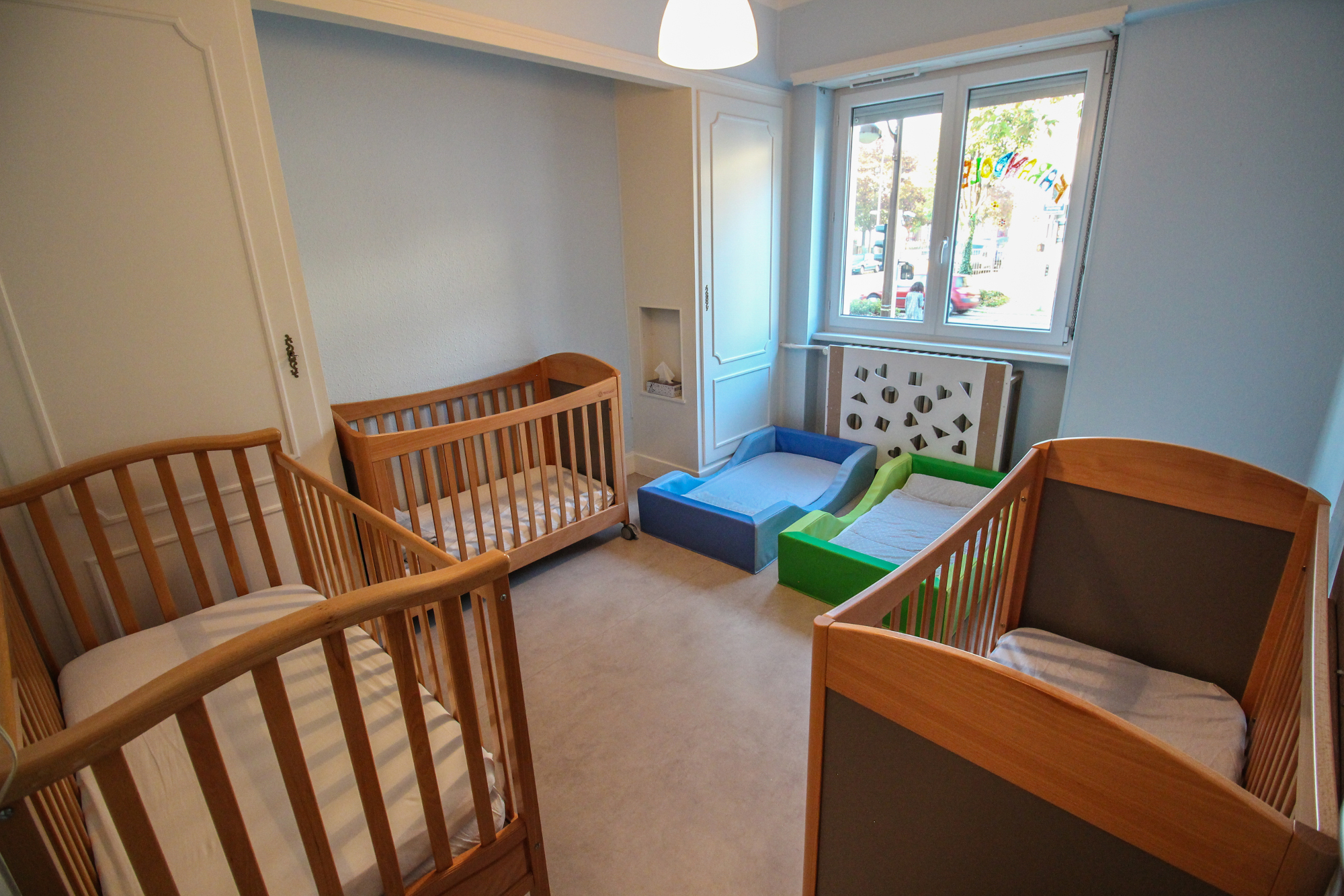 - Le sommeil A la Farandole, le sommeil, c’est sacré. Pas question de réveiller un enfant et les chambres sont à l’écart de la principale pièce de jeux. Chaque enfant possède son lit. Les petits, emmitouflés dans leurs turbulettes, dorment dans des lits à barreaux sécurisés.